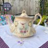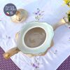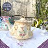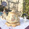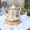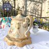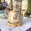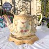 Ấm cổ hoa hồng dải men ngà kèm chân kê