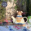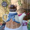 Ấm xinh xắn với khuôn hình cô chuột đội mũ cầm giỏ hoa.