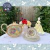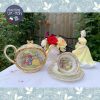 Ấm dáng thùng ủ vang Barrel với cảnh cặp đôi đàn hát trong vườn xanh mướt rất tình tứ, vui tươi rạng rỡ bởi mạ vàng viền quanh 2 mặt ấm và nhấn tay cầm, vòi ấm.