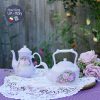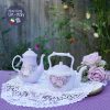 Ấm trưng bày tím lilac hoa hồng có quai ngang.