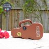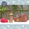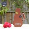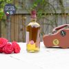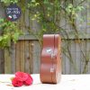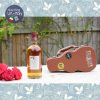 Chai đựng trong hộp da cây đàn với tên được gắn kim loại sang trọng trên bề mặt.