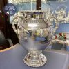 Có những lúc bạn sẽ giật mình bởi thiết kế 1-0-2 của kĩ nghệ bạc Anh thô sơ. Trong khi các âu mạ bạc đều theo motif dáng lư, chiếc âu mạ bạc bạn đang xem lại là dáng chum với tỉ mỉ chi tiết đắp taọ hình nổi miêng, chân, quai cầm không đúc đơn thuần mà xoắn thắt rất kĩ nghệ. Phần tài năng nhất bên cạnh khuôn âu, cách tráng bạc cổ c.1800 kiểu Anh là những hoạ tiết khắc tay quanh âu.