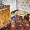 M6- Bàn tròn trắng mặt hoa bách thảo (69x49x56cm)- HẾT