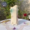 Chiếc bình với tông màu pha vẽ tay phấn nhẹ của xanh ngọc lam sáng lan toả vào mảng gốm vàng nhẹ với những chùm hồng phấn dịu dàng nên thơ vẽ kĩ lưỡng và tài năng của nghệ sĩ xưởng gốm Prussia.
