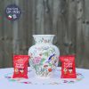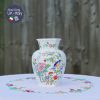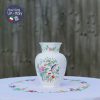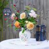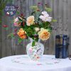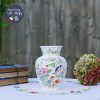 Hoạ tiết lấy âm hưởng châu Á với chú chim xanh trên cành hoa trà/ mẫu đơn hồng và chấm phá hoa đỏ cam, xanh tạo nên bình hoa phong thái cổ điển mà không nhàm chán.