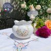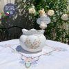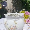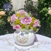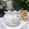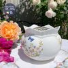 Bình xinh xắn bầu tròn chia 6 múi vồng với miệng nhô uốn lượn & nhăn gốm xếp nếp duyên dáng gốm trắng ngần & vườn hoa nhà tranh với bướm xanh, bướm vàng cam dập dìu làm trung tâm bàn tiệc hay home decor hút ánh nhìn.