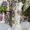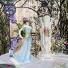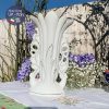 Bình hoa dáng loa xoẻ như bông hoa Lys với dải đúc nho và lá nho kèm theo mạ vàng phong cách xà bông công phu của thợ gốm tạo mẫu.