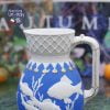 Bình nước, cắm hoa Victorian cổ đắp nổi cá c1870.