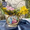 Trên mặt bình với mạ vàng dầy toả ánh chiếu hoạ tiết nữ thần cùng thiên thần đang yêu đời sinh động.