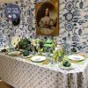 Bộ đĩa ăn hoạ tiết chùa trắng xanh Pháp.