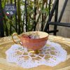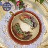 Bộ tách màu cam đất lạ hiếm với hoa quả mùa thu rạng rỡ nho, đào, mận hiện lên lòng tách.