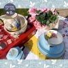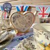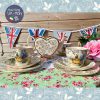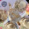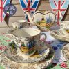 Bộ tách với cô gái vàng mặc váy đụp duyên dáng trong vườn tranh Anh quốc gồm 4 trios, ấm đi kèm và đĩa bánh có trục cầm rất xưa hồn Anh quốc.