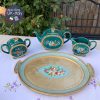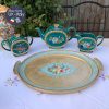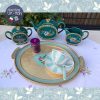 Bộ Sadler với màu xanh lá đậm hút mắt với hoa văn cam, ánh vàng men nổi tạo design đẹp đi cùng bộ tách chén nào cũng xinh.