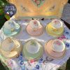 Bộ trà Clare duyên dáng nhãn mắt với tông màu phấn, mỗi tách là 1 màu phấn và điểm thêm mỗi loại hoa trong lòng tách nổi bật bàn tiệc.