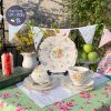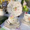 Bộ tách 2 người sứ xương vẽ tay chi tiết sinh động của nghệ nhân hãng Collingwood c.1930 sẽ giúp bộ sưu tập tách chén của bạn đăc biệt hơn. Những bông hồng vẽ to đậm xen với những lá nâu vàng kín tách rồi điểm xuyến hoa lưu ly xanh & lá xanh to hơn tạo độ hút vào bó hoa Victorian xưa trên nền lá. Người nghệ sĩ đã phải xoay nhiều góc độ để vẽ kín được tách & đĩa với những chi tiết nhỏ kì công tạo nên giàn hồng Victorian trên tay người nâng tách.