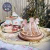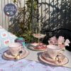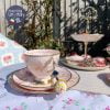 Bộ tách Tuscan tông gốm hồng phớt nhẹ xinh xắn với những nét vẽ tay lá hồng nâu hồng ton sur ton với màu nền gốm & tươi vui những chấm men gốm nổi xanh ngọc lam hạnh phúc cho 2 người.