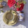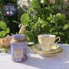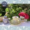 Tông màu sứ vàng sáng tươi như màu hoa anh thảo xuân tràn đầy hạnh phúc với dải vẽ ren điệu đà uốn quanh tách & trung tâm lòng đĩa. Xen kẽ dải gốm vàng là mảng gốm sứ xương trắng trong lòng tách, lòng đĩa & hoa hồng xinh xắn hiện lên tạo điểm nhấn cho set.