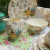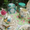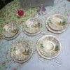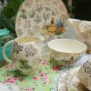 Nền sứ trắng ngà của nhà gốm Barratts với hoa văn Chintz mạ vàng kín và cô gái váy đụp vàng thời Victorian đội mũ với bối cảnh hoa mùa hè quyến rũ luôn làm người dùng thấy yêu đời, thi vị.
