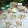 Nền sứ trắng ngà của nhà gốm Barratts với hoa văn Chintz mạ vàng kín và cô gái váy đụp vàng thời Victorian đội mũ với bối cảnh hoa mùa hè quyến rũ luôn làm người dùng thấy yêu đời, thi vị.