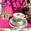Bộ tách với cảnh vườn tranh nên thơ cây cỏ xanh tươi, hoa nở chín hồng 21 món thuộc hãng Royal Vale. Mẫu tách được yêu thích của nhà gốm Anh c.1960. Đi kèm bộ tách là chiếc ấm Sadler – hãng duy nhất chỉ sản xuất ấm với hoạ tiết y như hoạ tiết cảnh vườn tranh Anh quốc của Royal Vale. Một bộ uống trà 22 món đầy đủ cả ấm hiếm cho 6 người sẽ khiến bạn thư thái & an yên nhất khi dùng tiệc trà.