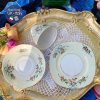 Bộ tách 6 người Colclough vàng kèm hoa hồng nơ xanh (19 món).