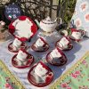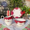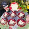 Bộ tách 6 người Paragon đỏ hồng men hoa vẽ tay đẹp xinh c.1940 (2 lựa chọn ấm).