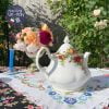 Option 1: nguyên bộ như ảnh Option 2: không cần ấm Option 3: đĩa bánh tay chìa thay bằng đĩa bánh 3 tầng rạng rỡ không gian tiệc