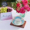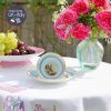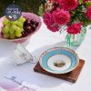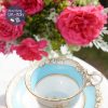 Tông xanh biển sáng dải quanh gốm trắng tinh của nhà gốm trứ danh Coalport với cảnh nước Anh làng quê hiện lên trong lòng tách và đĩa đẹp mê hoặc.