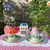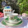 Bộ tách trà cổ dành cho đôi uyên ương với những nét vẽ điêu luyện chim lạ trong từng khuôn vẽ đẹp rạng rỡ trên nền gốm xanh tươi mởn sáng. Cách trộn màu rất tài tình của nhà gốm này.