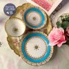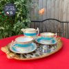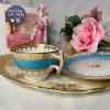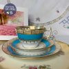 *Bộ tách với dải men xanh ngọc biển sáng pha cùng gốm trắng sứ xương và đường men mạ vàng uyển chuyển đơn giản nhưng hút mắt, đẹp sang. Tông men màu xanh ngọc biển của nhà gốm Collingwood khá hiếm thấy và đi kèm dáng tách quai cầm vuông chắc London Shape để đời của gốm Anh.