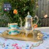 Bộ tách cho 2 người Collingwood xanh ngọc biển và ấm mạ bạc Anh.