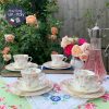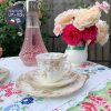 Vô cùng đẹp xinh dễ thương set trà cổ thời Edwardian của hãng Tuscan – tiền thân của Wedgwood. Gốm nhẹ bẫng & tông hồng phấn lan toả với gốm xương trắng đi kèm những cành hồng rủ như đang lạc vào vườn địa đàng & tay bạn không phải nâng tách trà mà đang nâng những bông hồng hạnh phúc.