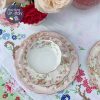 Đĩa lót & đĩa ăn bánh đúc gốm uốn lượn như 1 bông hoa và màu hồng phấn rất tinh tế lan toả vào trong nhẹ dần pha gốm sứ xương trắng như Ombre, kĩ thuật đỉnh cao của Tuscan thời đó.