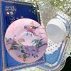 Bộ tách gốm nhẹ phủ hồng ngoài, trong trắng với chú chim robin và cành lá hiện ra sống động.