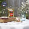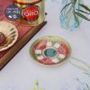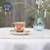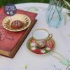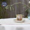 Tông màu xanh vân lá mạ đi kèm những khoang đỏ xỉn cổ điển với lối vẽ đối xứng nhiều mạ vàng chia khu vực trên tách phong cách Baroque, bay bổng.