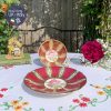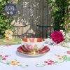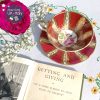 Bộ tách Cabinet Paragon men đỏ khó nung tạo sọc với mạ vàng trang trí sang trọng, quyến rũ và hoa hồng trong lòng tách/đĩa lót duyên dáng.