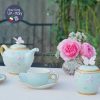 Tông màu xanh bạc hà là tông màu đem đến cảm giác thanh bình, nhìn là muốn toả lòng, lạc quan khi kết hợp cùng tông hồng nhạt thể hiện sinh động trên hoạ tiết nổi đúc cánh bướm trên tay cầm như bạn đang xỏ tay vào chiếc nhẫn vàng. Cách đúc khuôn tách, lót tách hình cánh bướm đẹp sinh động mang đến nhiều điều hạnh phúc sinh sôi.