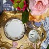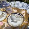 Hoạ tiết hoa hồng Nhật dịu dàng ửng lên trên nền gốm thơ mộng và những bông hồng này hoàn toàn vẽ tay bởi nghệ nhân Noritake. Bông hồng cứ hút mắt đẹp xinh toả sáng cùngmạ vàng khắc axit tạo màng vẩy nổi nhẹ trên gốm. Cảm giác chạm tách ngắm hoa và mạ vàng rất thích thú khó tả. Lối khắc axit mạ vàng 22kt này là đặc trưng của gốm Nhật Noritake.