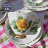 Mạ vàng 22kt quanh viền tách, đĩa, tay cầm và mạ vàng đậm phủ kín chân tách/ ấm quai khiến set trà nổi bật & rạng rỡ trong ánh sáng tự nhiên hay bất kì ánh sáng nhân tạo nào.