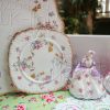 Hoạ tiết hoa rủ Royal Stafford tông màu nhẹ nhàng quyến rũ tím, hồng & vàng trên nền sứ sương trắng như thì thầm của mùa xuân và đôi lứa.