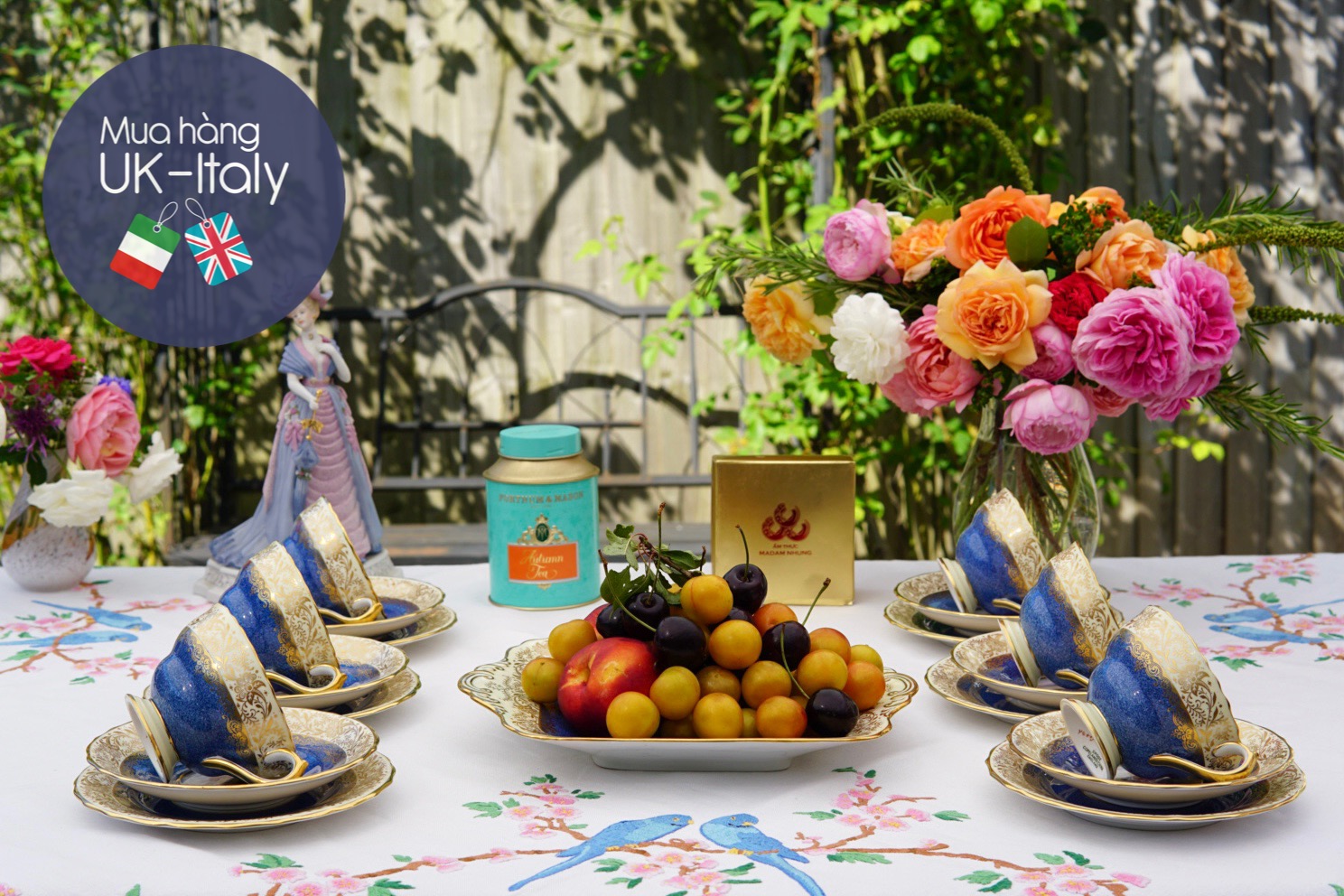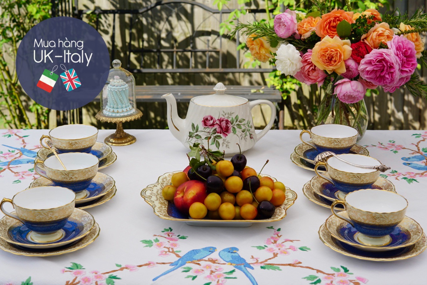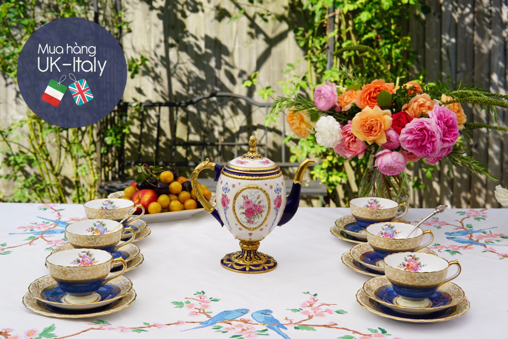 Bộ tách 6 người Spode cobalt hoa Anh dùng cho mọi dịp này Thảo lên 2 ý tưởng với 2 loại ấm.