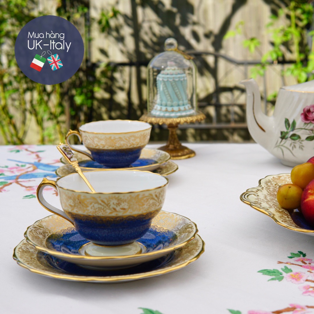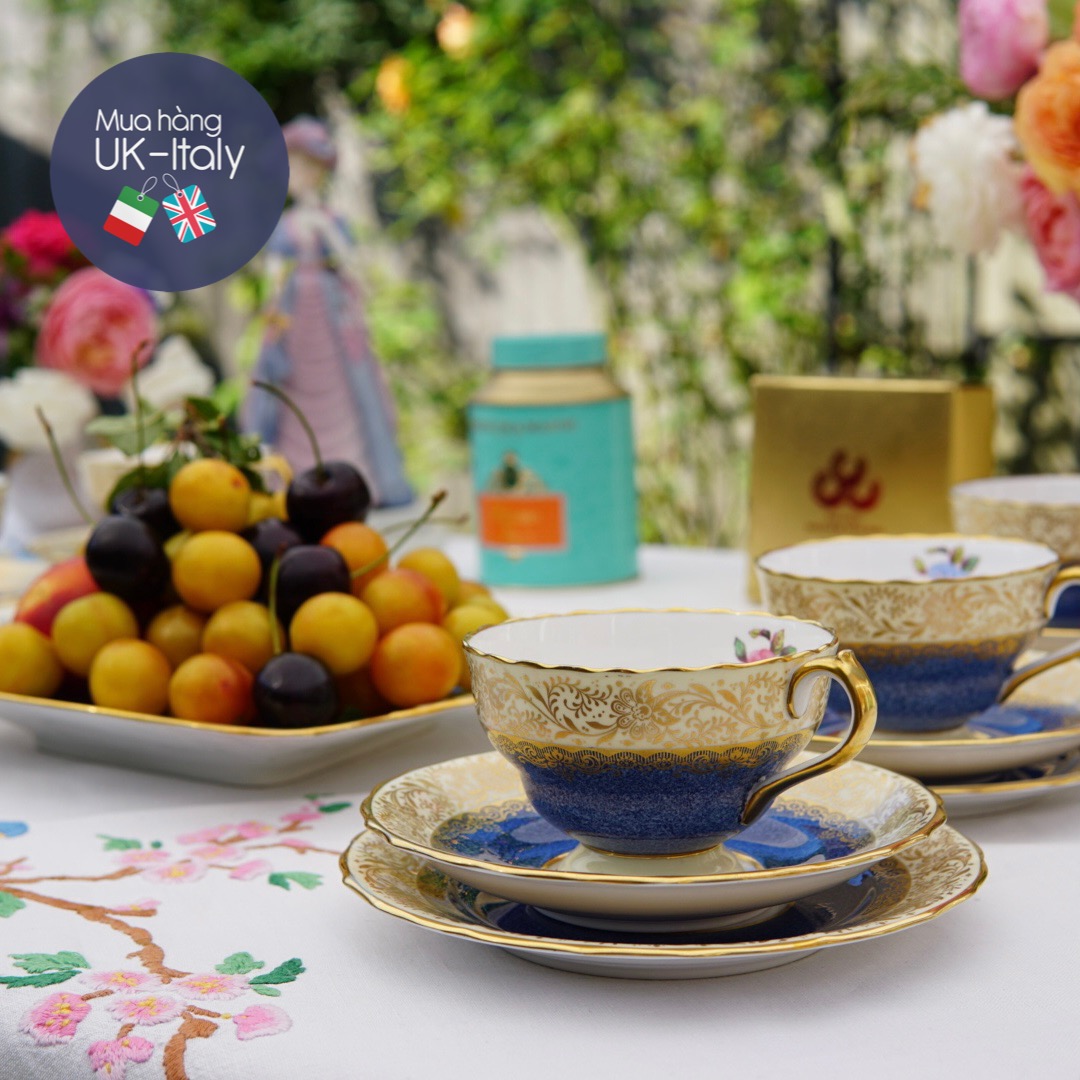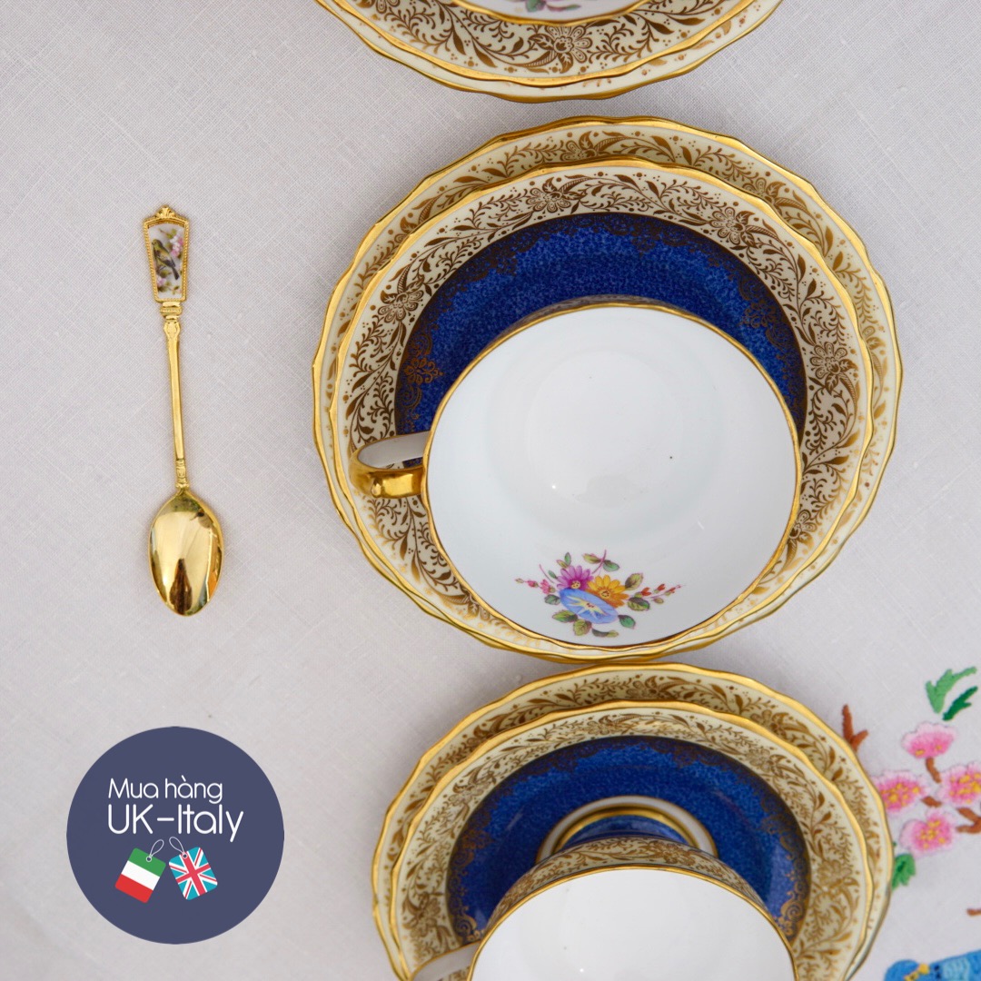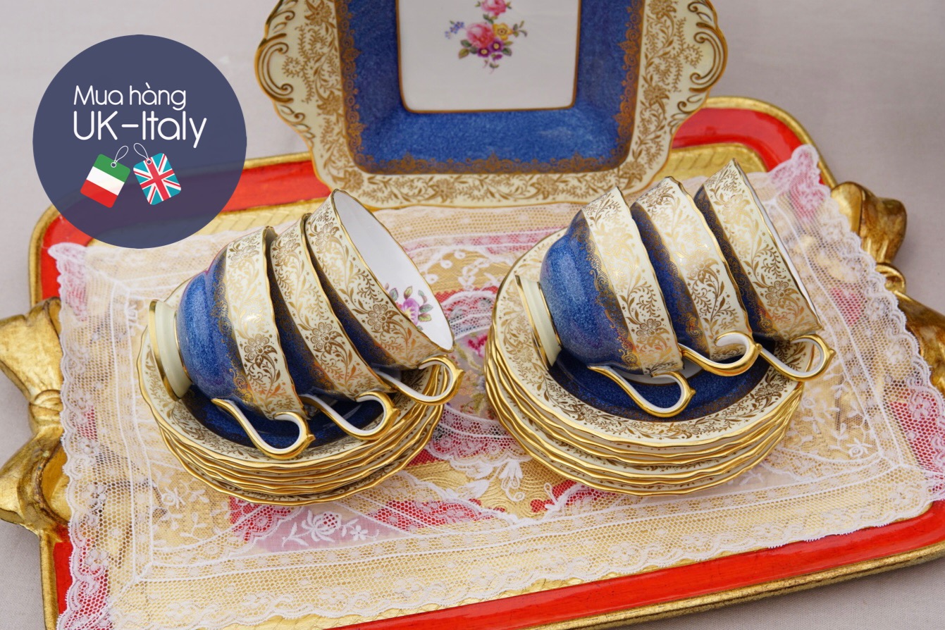 Bộ tách Spode Ruskin xanh cobalt vàng kem hoa hồng cho 6 người (3 lựa chọn).