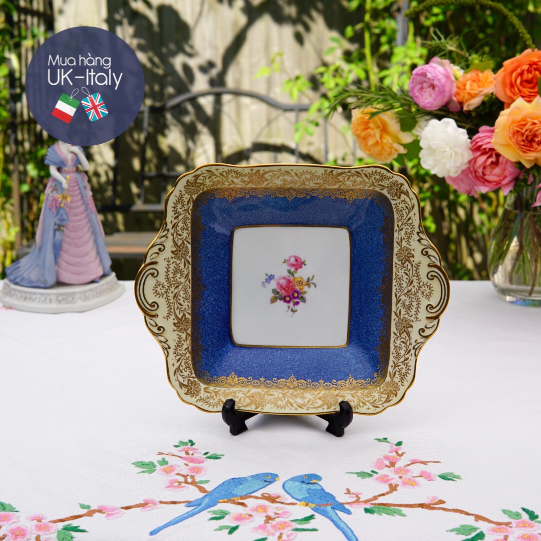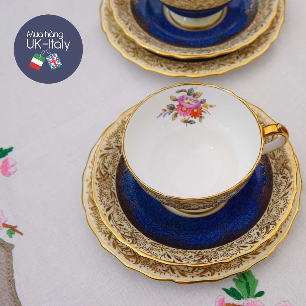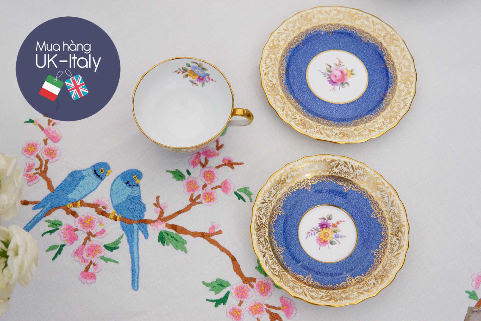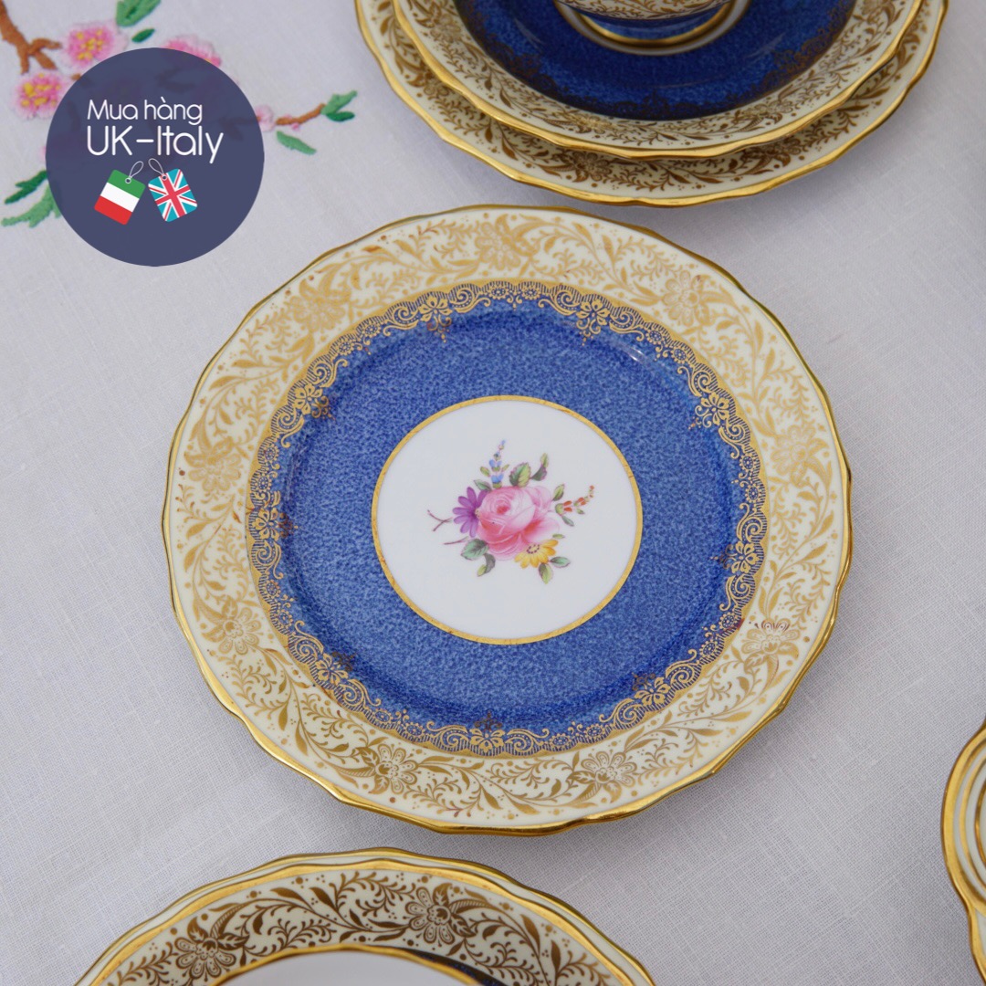 Bộ tách Spode Ruskin xanh cobalt vàng kem hoa hồng cho 6 người (3 lựa chọn).