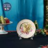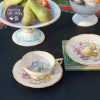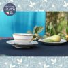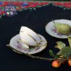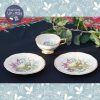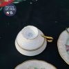 Tông màu hoạ tiết như tranh thế kỉ 18 của bộ tách với nền như đá cẩm thạch vân mịn. Đi kèm tông màu hoạ tiết là những đường mạ vàng dày tại tay cầm, viền tách, đĩa tạo sức hút trên bàn uống hay tủ cabinet. Dùng trong nhà hay ngoài trời đều lung linh.