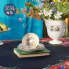 Tông màu hoạ tiết như tranh thế kỉ 18 của bộ tách với nền như đá cẩm thạch vân mịn. Đi kèm tông màu hoạ tiết là những đường mạ vàng dày tại tay cầm, viền tách, đĩa tạo sức hút trên bàn uống hay tủ cabinet. Dùng trong nhà hay ngoài trời đều lung linh.