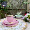 Tài tình của nhà gốm là tạo ra tông xanh màu bạc hà tone khó pha với bông hoa của núi rừng Scotland hiện lên chan hoà & phải rất kĩ thuật để đường mạ vàng khi trộn tông màu men gốm không bị ngả ố chuyển màu. Những đường nét chi tiết mạ trong lòng tách cũng được vẽ khéo léo tài tình và điểm tô từng mm.
