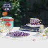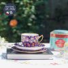 Bộ tách Trio hoa Chintz đỏ xanh cobalt c.1940
