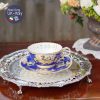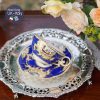 Bộ tách true trio cổ săn lùng 2 Coalport xanh Cobalt vẽ tay cảnh Anh.
