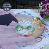 Sự tài tình & chất lượng thủ công của bộ thìa được thể hiện ở những đường vuốt cạnh tay cầm thìa, độ cong lòng thìa & nối lòng thìa với tay cầm. Và phần đẹp & độc đáo khác biệt của thìa nằm ở men phủ trắng trang trí mặt ngoài thìa với những dải ruy băng tết thành nơ như đang cầm treo những bông hồng tím lilac duyên dáng xen lá xanh. Kĩ nghệ này được gọi là Guilloche – tức là bạc được khắc thành hoạ tiết trước khi tráng men lên bề mặt & tạo thành 1 tác phẩm đẹp xinh như bạn đang ngắm.
