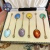 Bộ thìa bạc Anh 925 tráng men 6 màu độc đáo.